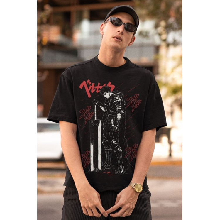 Футболка з аніме принтом Берсерк Гутс Скулл Кнігхт оверсайз (S/M/L) Чорний AnimeJ1043