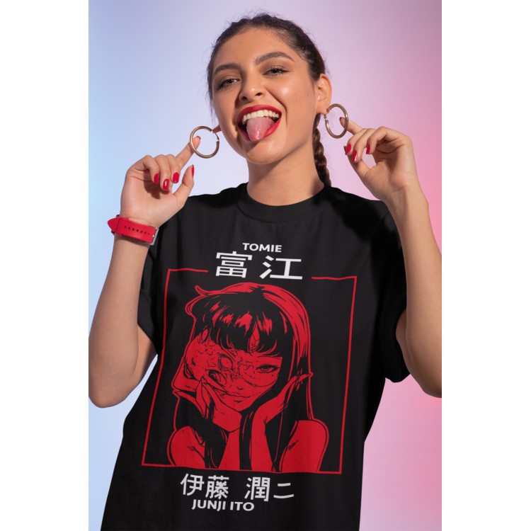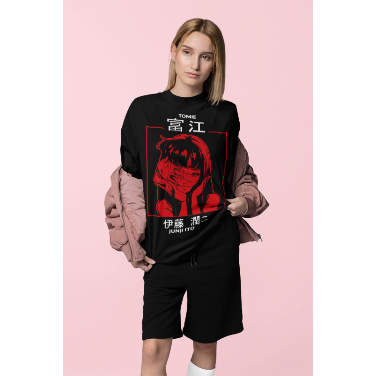 Футболка з аніме принтом Джунджі Іто Узумакі Хоррор оверсайз (S/M/L) Чорний AnimeJ0647