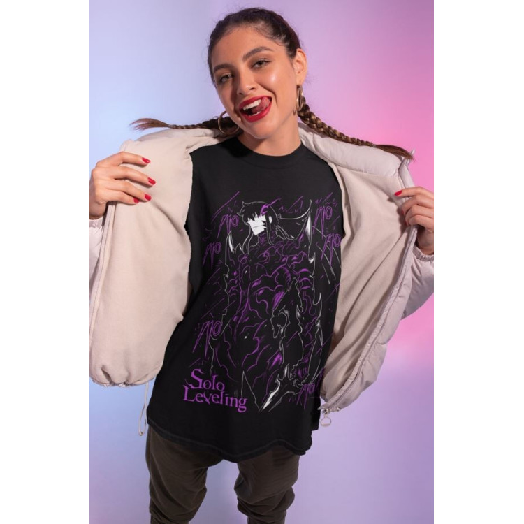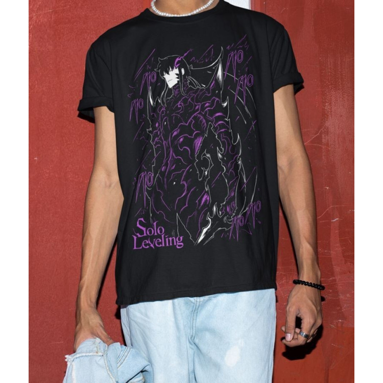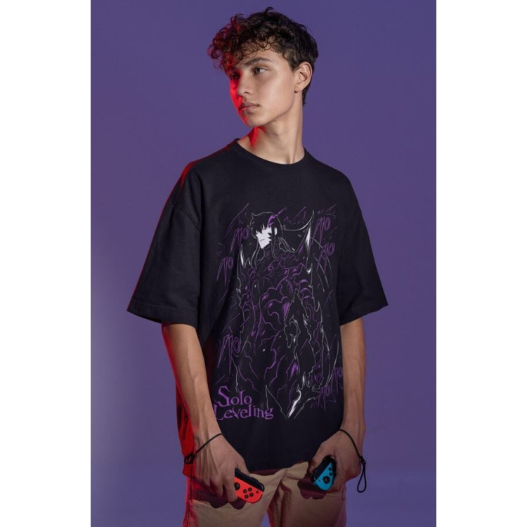 Футболка з аніме принтом Соло Левелінг Сунг Джінвоо оверсайз (S/M/L) Чорний AnimeJ0798